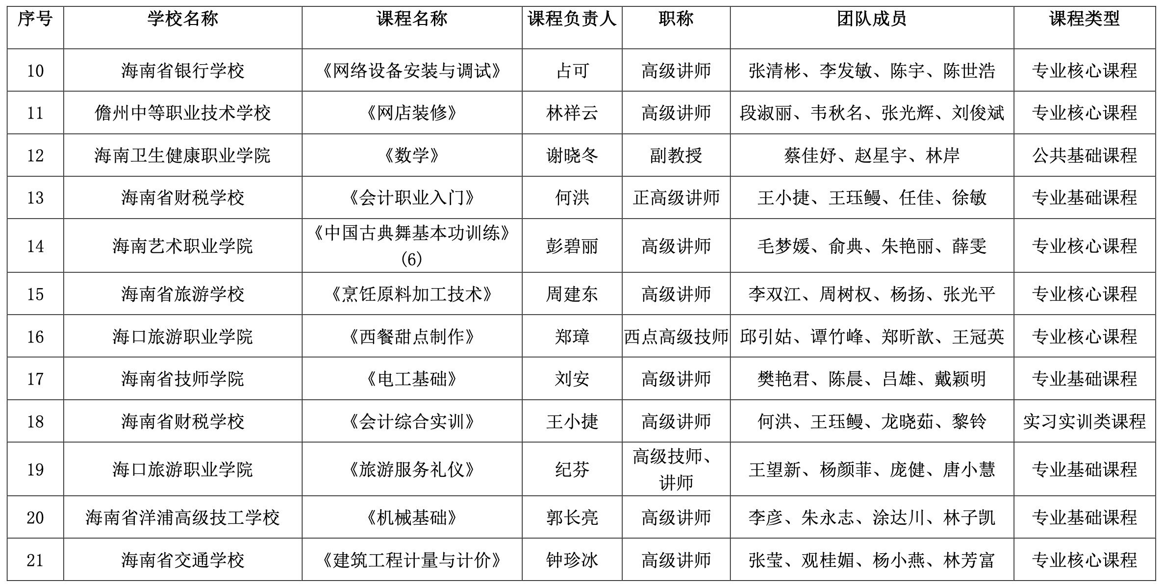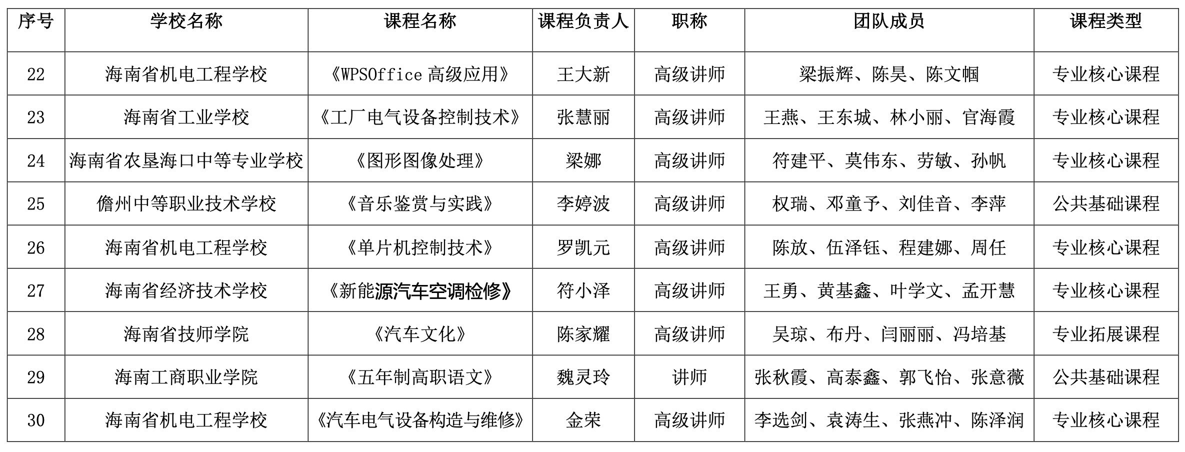2024年海南省中等职业教育在线精品名单。海南省教育厅供图